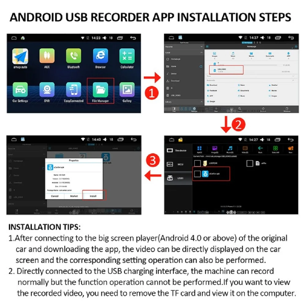 1080P HD USB Car Video Camera Night Vision Dash Cam Video Recorder Android 170° Wide Angle Car Dashcam Hidden Auto DVR Camera