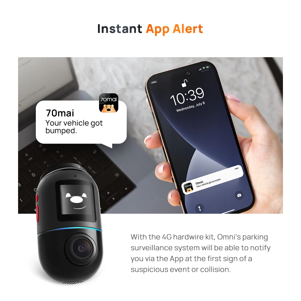 Whenever a collision or suspicious incident appears, Omni’s parking surveillance system instant notifications via App, and you can check what’s going on around your car, never miss any noteworthy events.