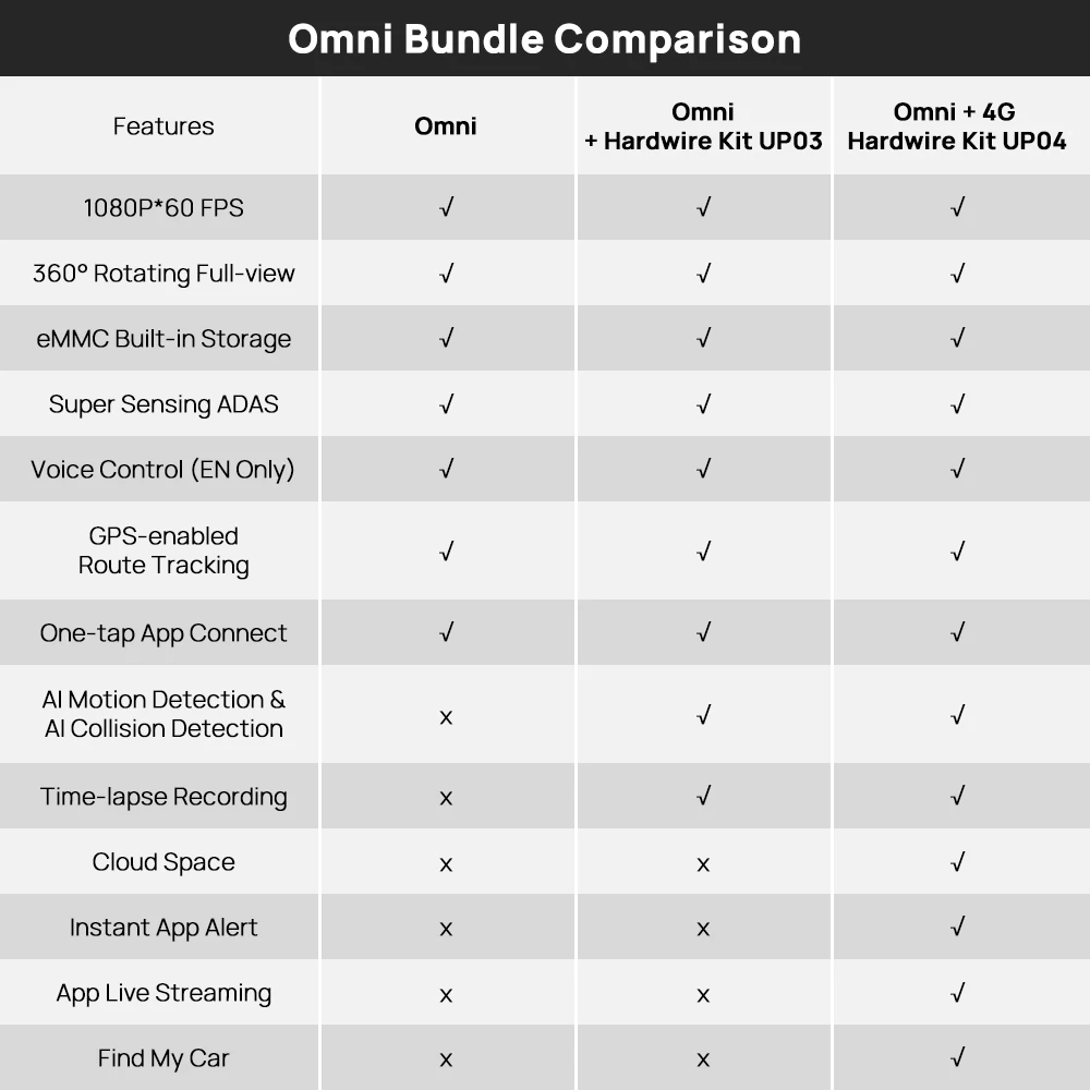 *In above options, there are only 70mai X200 or 70mai X200 with Hardwire Kit UP03 (Not 4G Hardwire Kit UP04) !!