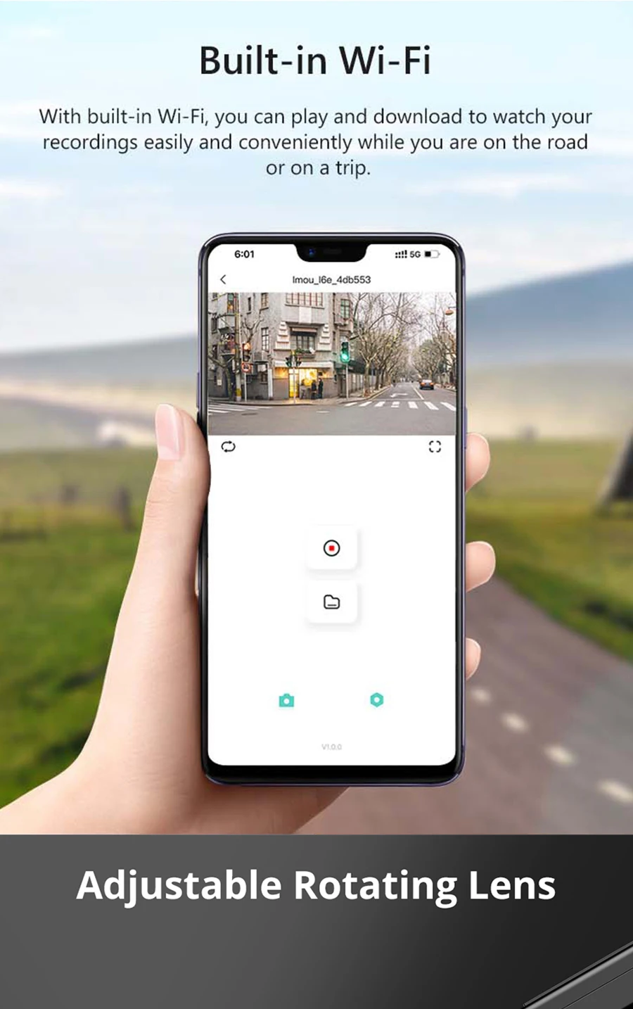 Connect your phone via Wi-Fi and manage your footage easily using the free AZDOME / LuckyCam app (available on the App Store and Google Play).