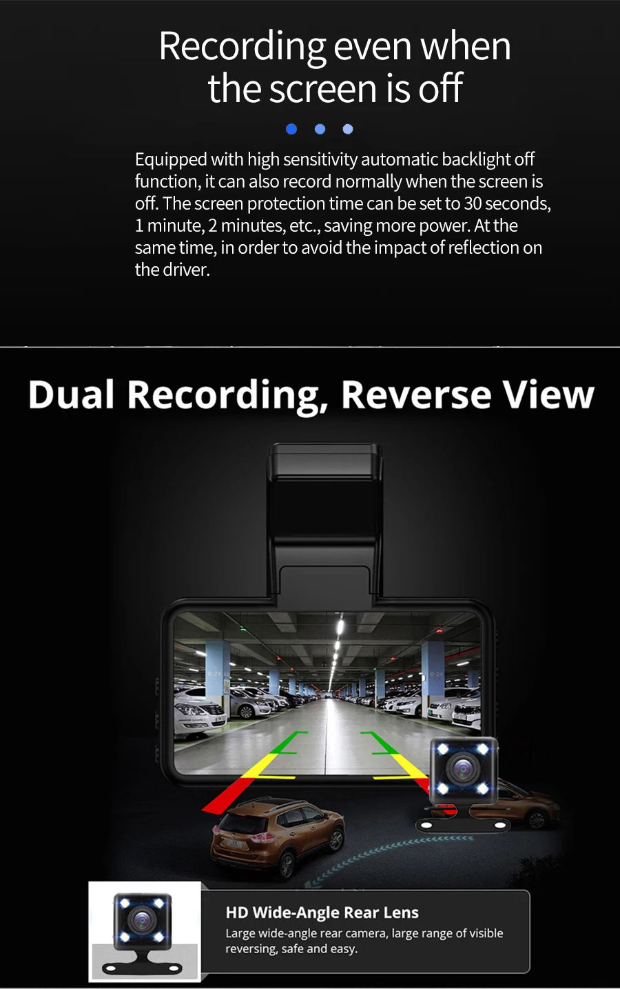 🚗 Dual-Lens Protection (Front + Rear)